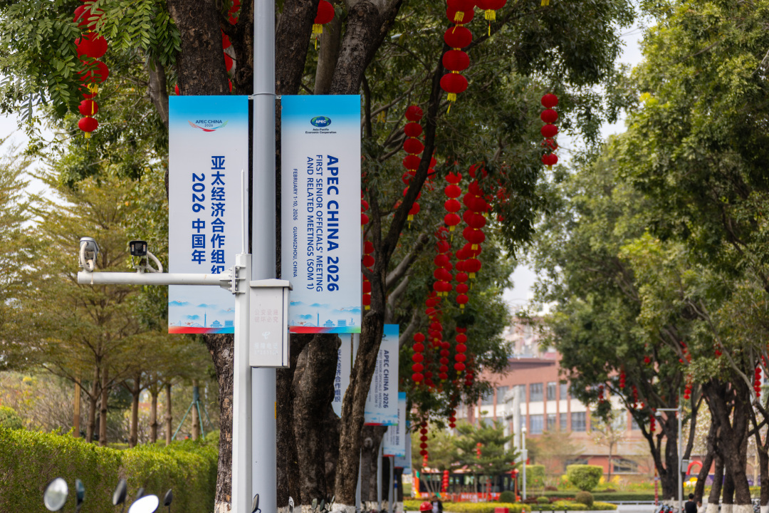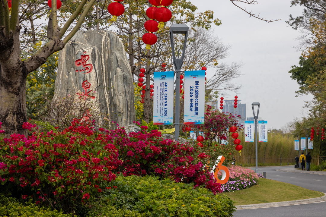 在APEC2026年第一次高官会主会场邻近,臆测会议符号营造浓厚会议氛围。