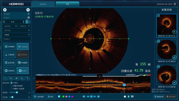NIRS导管不错以极快的速率进行自动回撤,在一次操作中完成对整条冠脉的化学全景扫描。这使其相等得当在介动手术中,快速筛查哪一段血管、哪一个斑块具有最高的冲破风险。