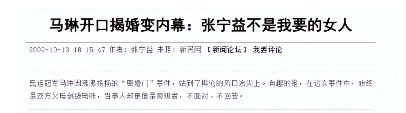2009年轻岛全运会放荡后,马琳片刻公开暗意,我方和张宁益的热枕仍是冲破,这话一出,全网哗然。