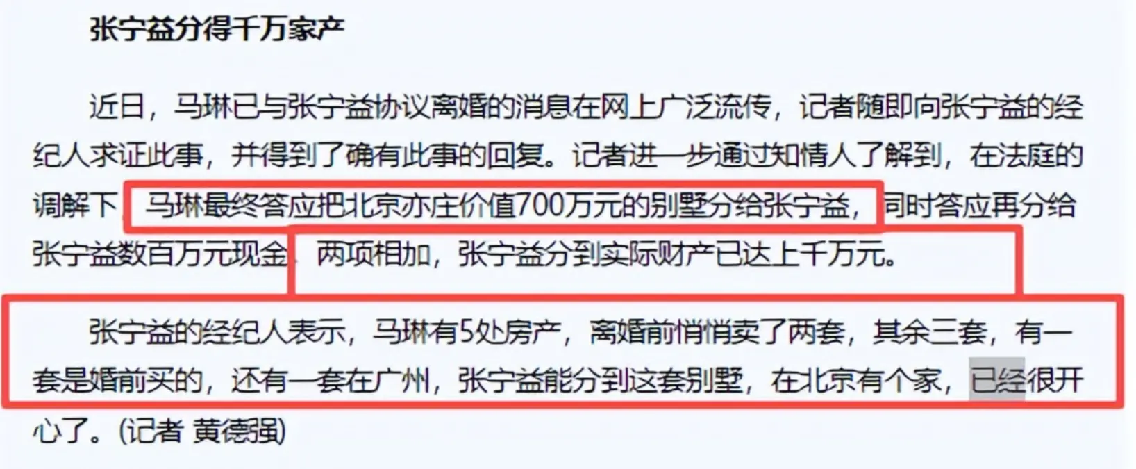直到分到了马琳千万财产,这场争端才堪堪放荡。