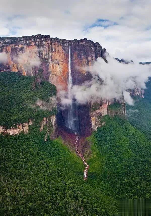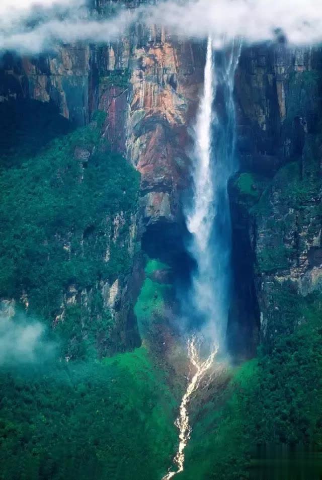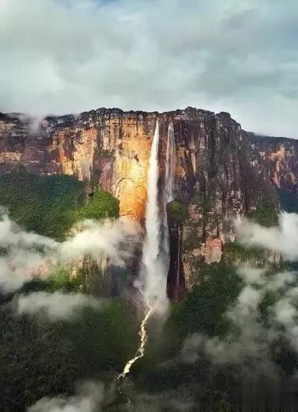 安赫尔瀑布是天下上落差最大的瀑布,丘伦河水从平顶高原奥扬特普伊山(Auyan-tepui)的陡壁直泻而下,实在未涉及陡崖,落差达979.6米,大略是尼亚加拉瀑布高度的18倍。