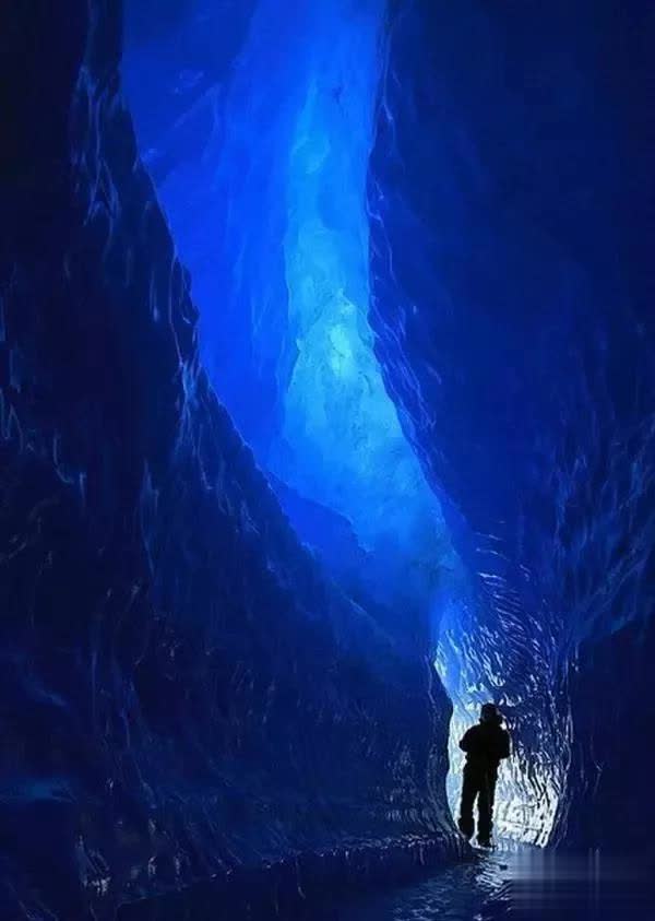 蓝色冰纯正,南极。5米高,150米长的冰纯正。形成原因是冰架上冰脊的张力和冰熔解。