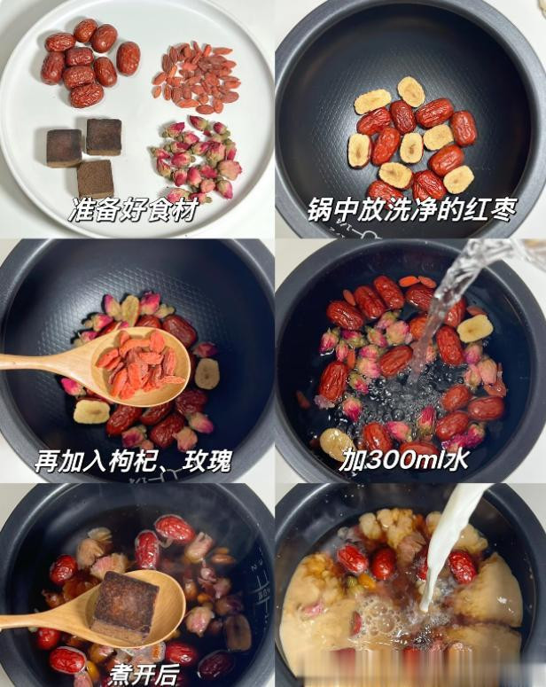 用玫瑰花、红枣和牛奶熬制,作念成一杯玫瑰牛奶红枣茶,既能疏肝理气,又能补血养颜。