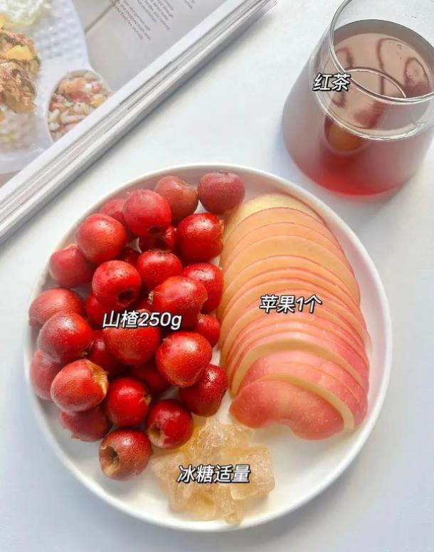 用山楂和苹果煮水,既酸甜开胃,又能助消化、活血化瘀。