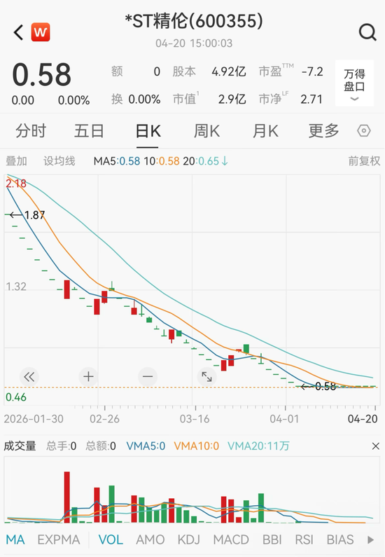 *ST精伦发布公告称,公司于4月20日收到上交所对于圮绝其股票上市暨摘牌的决定。公司股票在3月9日至4月3日历间,因持续20个往将来的逐日股票收盘总市值均低于5亿元,触发股票圮绝上市情形。