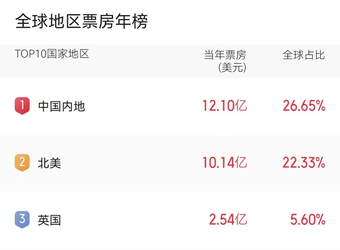 2026中国电影票房暂列世界第一