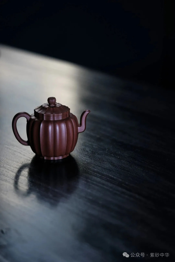 宫灯之式,寓意祥瑞,又赋书卷气。此为作家摹明晚期菱花高宫灯壶所作,整器造型古朴谨慎,兼具鼓胀和洽之好意思,古典娴雅,清秀挺拔;器身线条档次丰富,不尚妍媚,尽显朴雅坚栗之质。三弯壶流,波折婉转。
