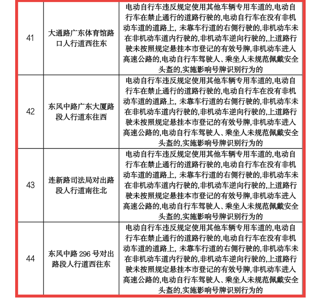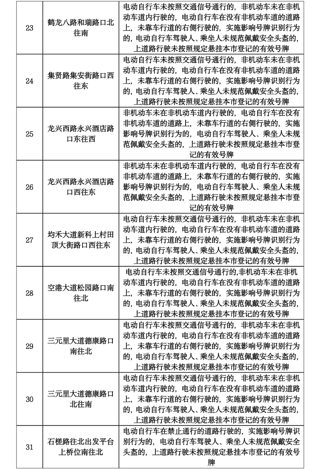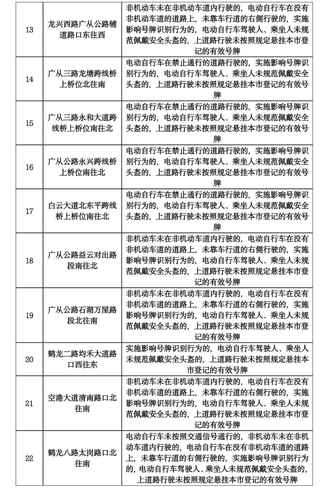 电动自行车交通犯警四肢合手拍取证新增点位表