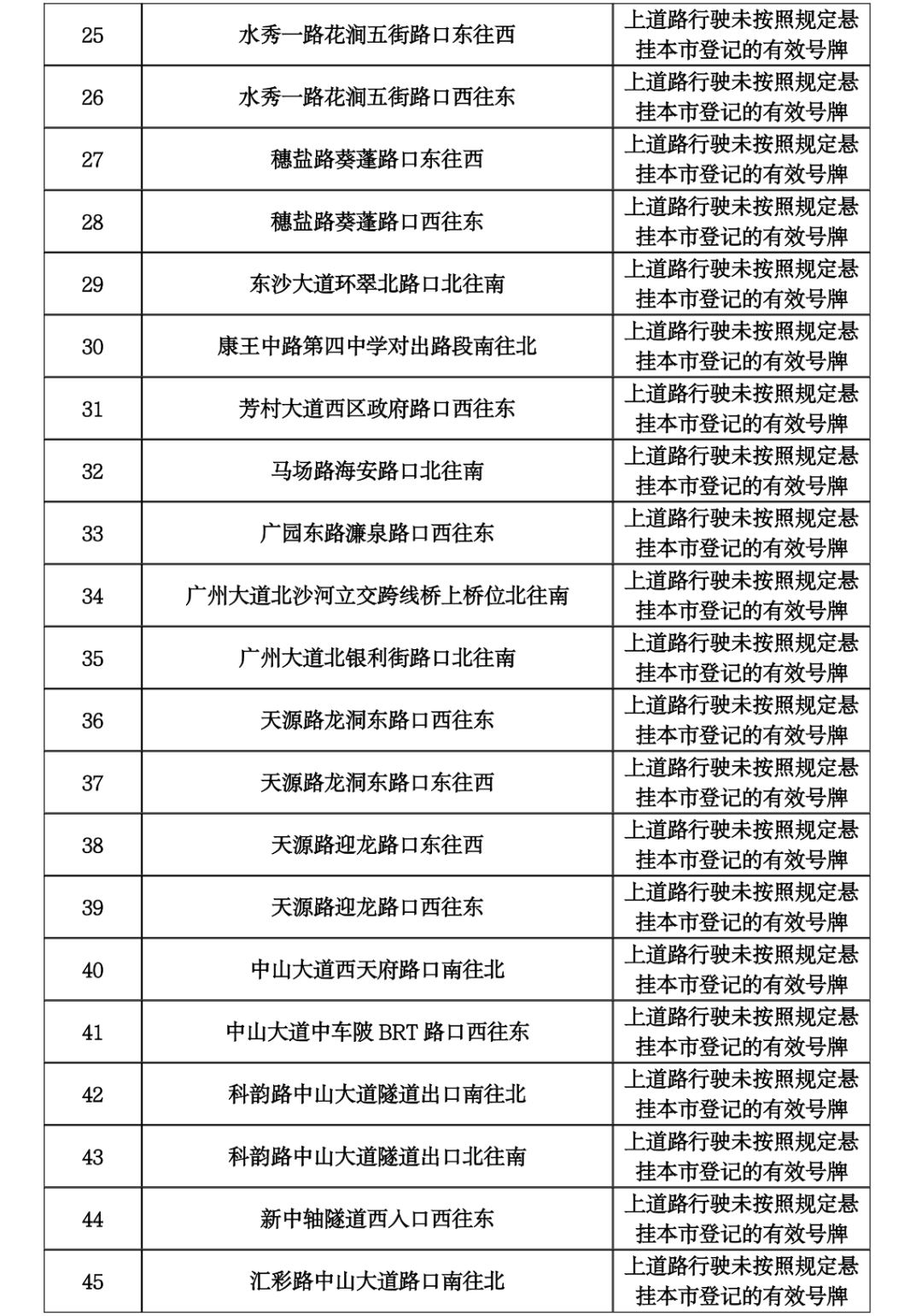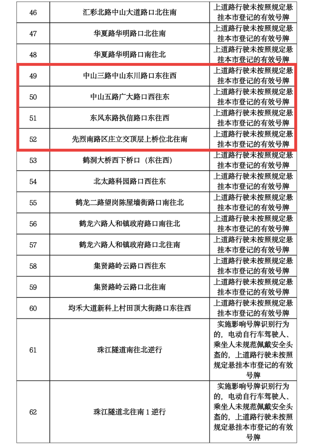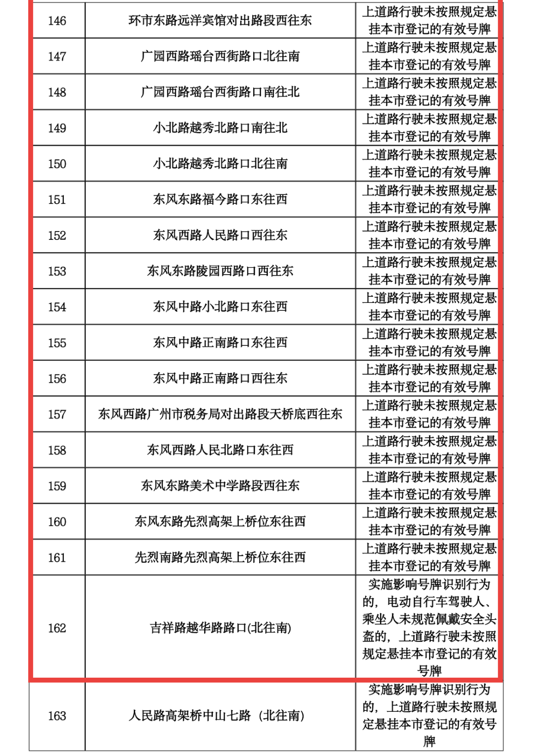 电动自行车交通犯警四肢合手拍取证新增点位表
