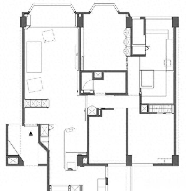 主卫把浴缸搬到窗下,早上泡澡被天光唤醒,晚上泡澡看街灯,干湿辩认用一块可推拉的石板,比玻璃阻遏轻,视觉不堵。