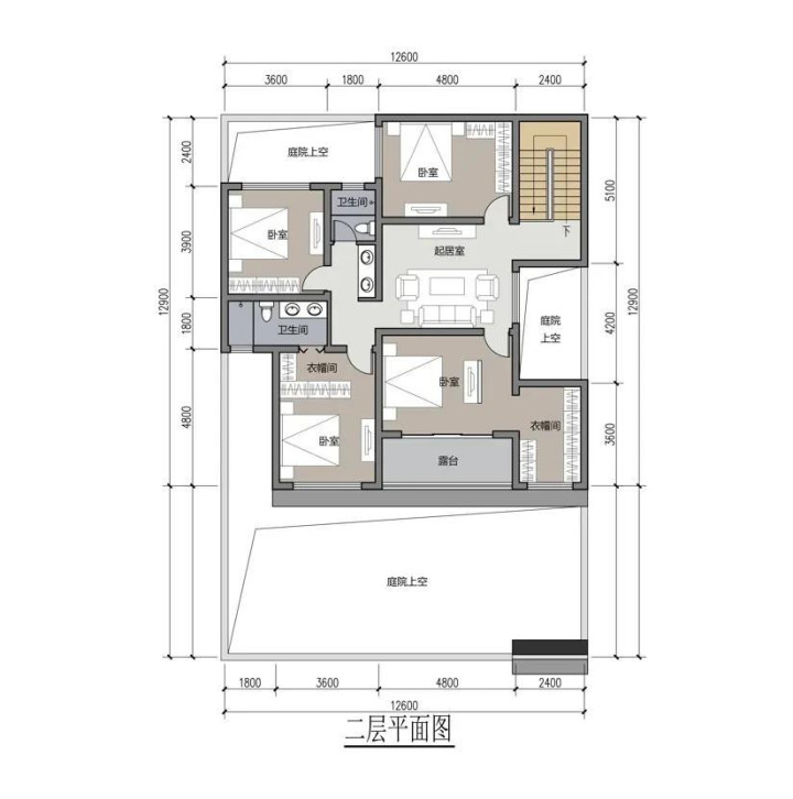 高下杂沓的露台: 二层建立了大面积露台,告成鸟瞰一楼院落。晨起遥看,暮看晚霞,斥逐了居住空间与当然的深度连结。